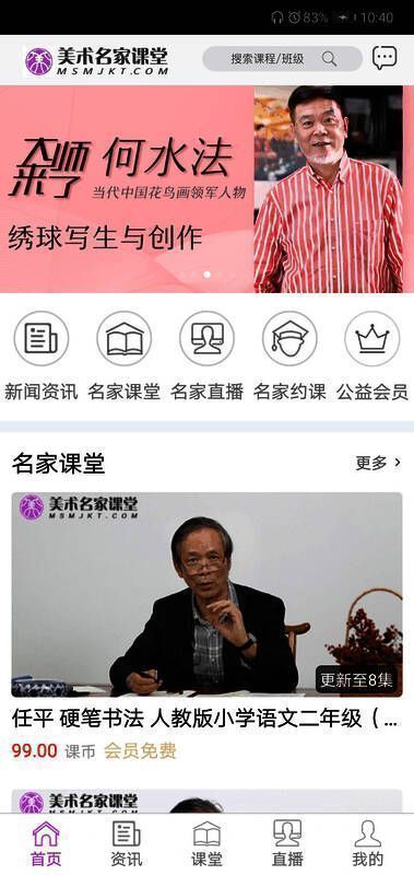 使用《美术名家课堂》非常简单。用户只需打开APP,即可查看各类服务内容;进入新闻资讯板块,了解最新的艺术教育动态;在名家课堂中选择感兴趣的课程资源;通过直播功能观看实时教学,还可以设置课程提醒,不错过任何精彩内容。