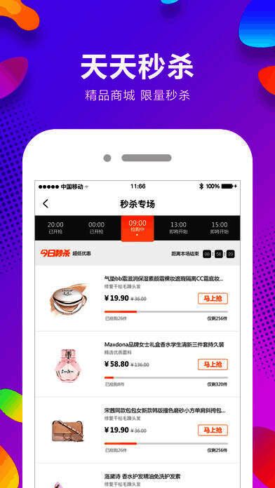 今日秒杀:每日推出超低价限时抢购商品,激发购物乐趣;
