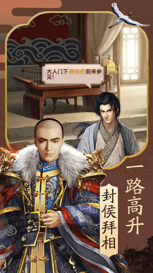 游戏设有官品系统,玩家可从小吏一路升迁至内阁大学士,感受步步高升的成就感;同时还有门客系统,汇聚数十位历史名臣,如和珅、纪晓岚等,协助你处理朝政事务。