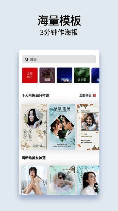 4、海报设计:内置名片、价目表、课程表、招代理、正能量语录等丰富模板,专业设计随心更换;