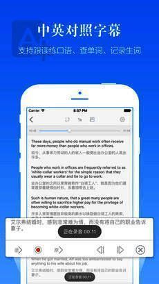 3、内置录音跟读功能,帮助用户实时纠正发音与语调;