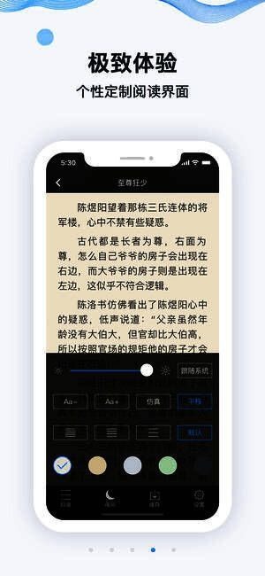 软件内置独立研发的排版系统,呈现出媲美纸质书籍的阅读效果,字体、背景可自由切换,支持多种阅读主题,带来高度个性化的视觉享受。