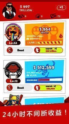 通过不断上传视频、开启直播,你可以积累人气并逐步提升知名度。随着收入的增长,玩家还能升级设备、装修直播间、甚至雇佣助理来协助运营,让你的主播事业更上一层楼。每一次点击、每一场直播,都是迈向巨星之路的关键一步。
