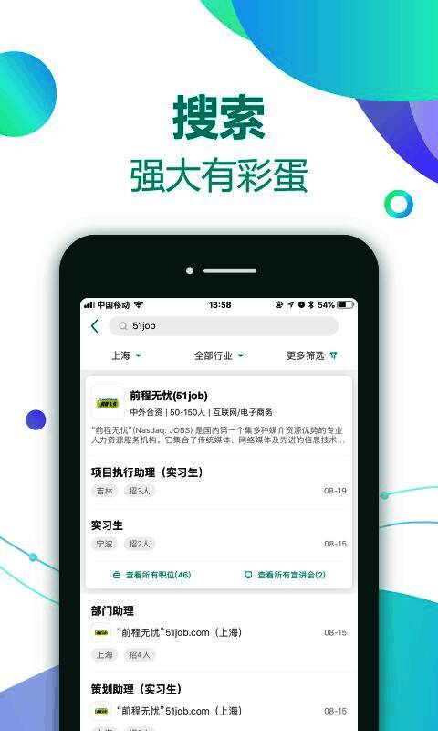 这款软件致力于提升用户的在线求职体验,帮助毕业生顺利过渡到职场阶段。通过智能匹配和信息推送,用户可以快速掌握心仪企业的最新动态,从校园招聘到名企实习,覆盖全国范围的就业信息一应俱全。此外,还支持绑定前程无忧账号,一键登录,操作便捷。