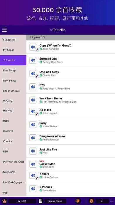 软件内置超过1000首来自不同风格流派的曲目,并每周持续更新最新、最热的音乐作品。玩家不仅可以按照自己的节奏自由演奏,还能通过调整难度设置,挑战“简单”、“中等”、“困难”甚至“自动”模式,享受个性化的音乐旅程。