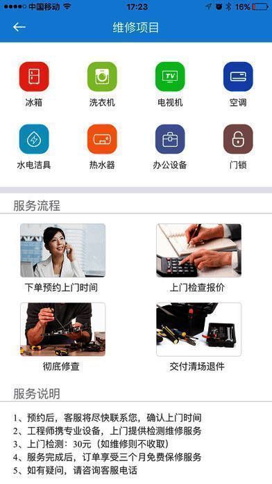 点点修软件界面展示,清晰呈现各类家电维修服务选项">
