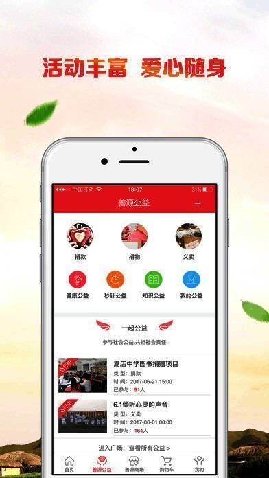 “善源商场”汇聚了众多爱心企业,用户可使用积分加现金兑换丰富多样的爱心商品,不仅献出爱心还能获得回馈;