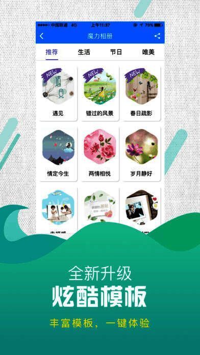 《魔力相册》最大的亮点在于“一键生成”功能。用户只需导入照片,选择心仪的模板与配乐,即可快速生成一段精美的音乐相册视频。无论是旅行见闻、家庭聚会,还是情侣纪念日,都能通过这一功能被赋予动态情感,变得更具故事感。