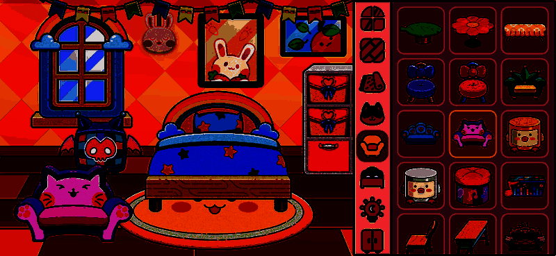 除了角色造型,你还可以为你的偶像打造专属梦幻小屋。从云朵沙发到彩虹地毯,从霓虹灯牌到泡泡机,所有家具和装饰都支持自由旋转与缩放,让你尽情发挥创意,布置出独一无二的空间。无论是童话卧室还是潮流派对房,每一处细节都可以由你亲手设计,想象力无边界。