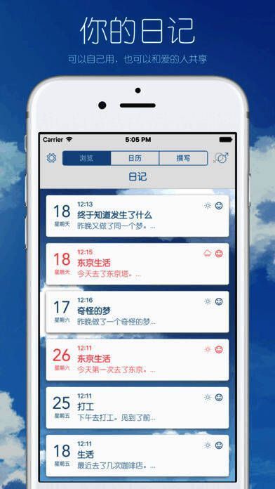 除了核心功能,《你的日记》在用户体验方面也下足了功夫。你可以为每篇日记添加心情标签、天气信息,甚至将日记制作成图片分享至朋友圈。软件提供男生蓝色与女生粉色两款主题,并支持日历浏览,帮助你不错过每一个重要日子。