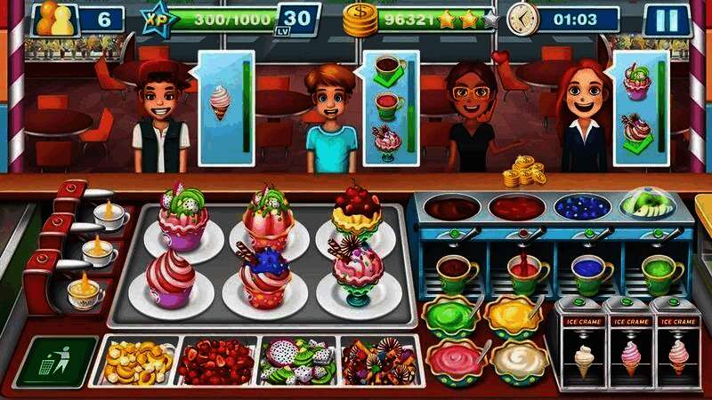 游戏设有多个富有挑战性的关卡,每个关卡都有独特的任务目标与难度设置。同时,玩家还可以通过赚取金币升级餐厅设施,提高出餐效率,迎接更大的经营挑战。
