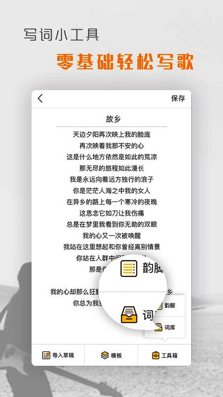 《音巢音乐》提供多样风格的原创编曲伴奏,帮助用户快速完成歌曲制作;内置灵感记录功能,让用户随时随地捕捉闪现的旋律片段;丰富的模板写词系统搭配上千韵脚表,一键操作简化歌词创作流程;更有“音乐小伙伴”社区助力组建乐队,激发协作潜能。