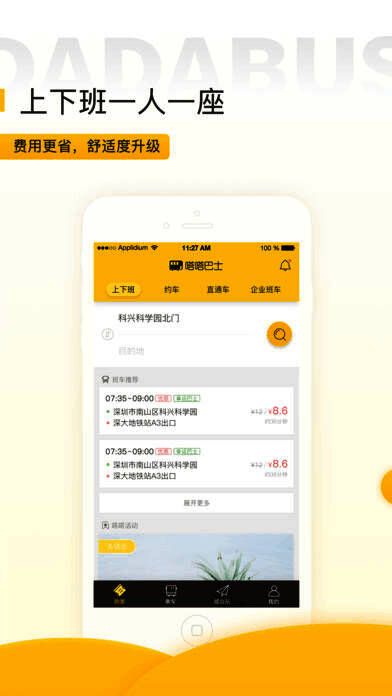 解决全国5亿白领上下班难题。嗒嗒巴士,地铁票价、专车服务,目前已开通北京、上海、广州、深圳、南京、厦门、西安、成都等30多个一二线热门城市3000多条上下班直达线路;