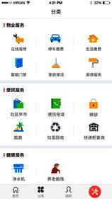 保洁、周边二手市场、约场地、论坛、活动、车位分享、巡更查询,使周边特色服务更好地服务业主。