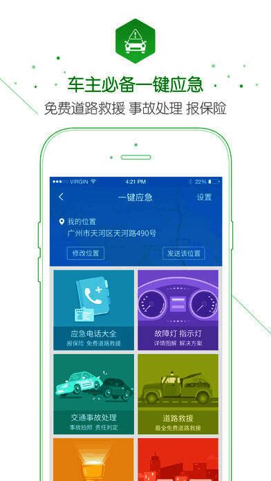 7、应急助手:应急电话、故障灯、指示灯、报保险、交通事故责任判定、最全免费道路救援;