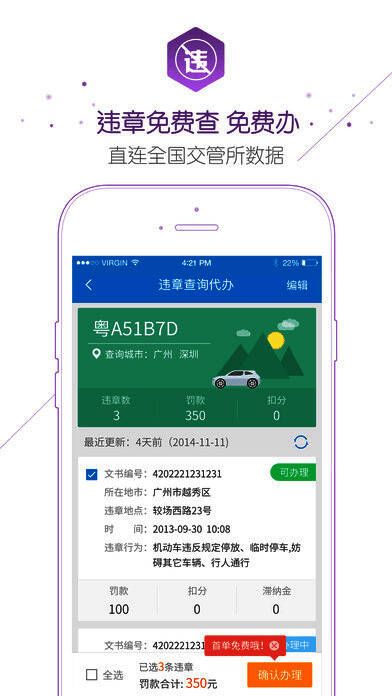 【查违章】覆盖全国360个城市汽车交通违章快速查询,直连省市车管所。在线办理,比路边店节省30%;