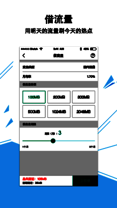 3、借流量,流量不够用,随意借,放心用;
