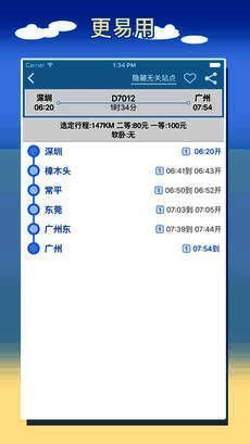《智能列车时刻表》APP是一款革命性的列车时刻表查询应用;比如, 您查询了一段旅程, 然后想要显示此趟列车的详细信息, 我们会清楚的标明你这段旅程所要经过的站点, 你可以将其他不经过的站点隐藏起来, 只关注你需要关注的。