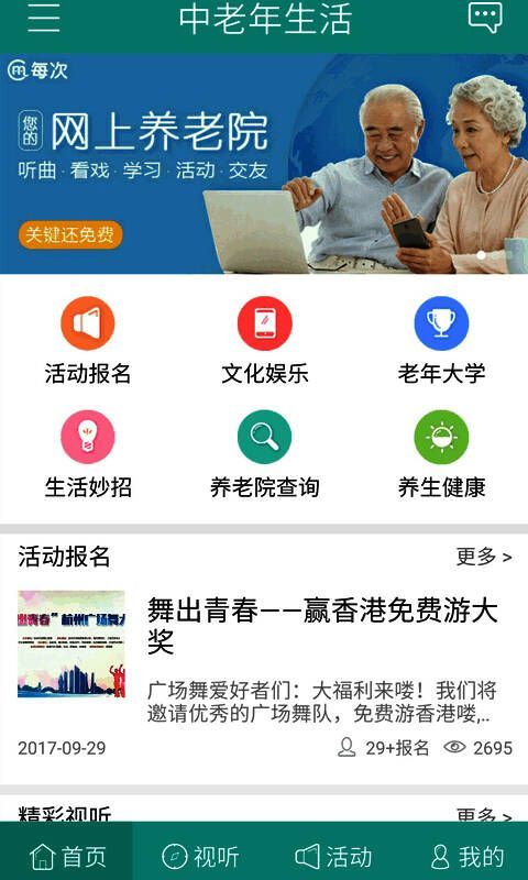 【活动报名】在线报名全国的中老年活动赛事:广场舞大赛、书画大赛、公益讲座等;