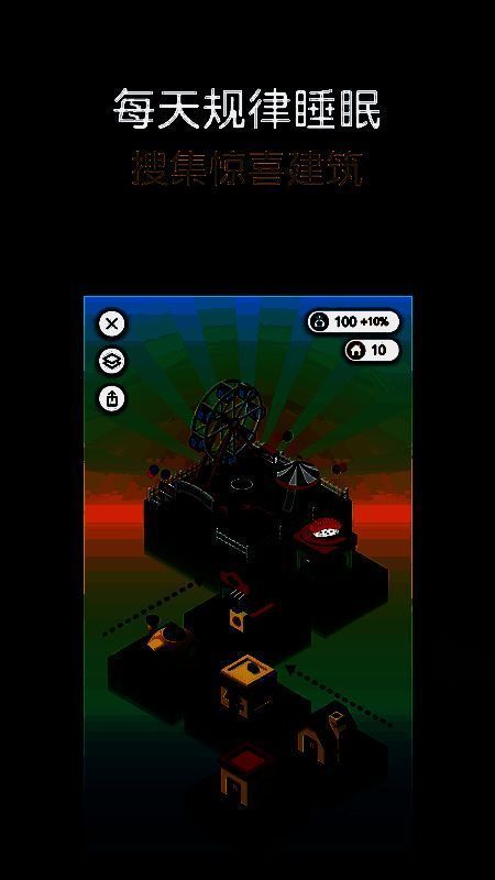3、每天在起床目标以前,摇动手机快速清醒。除了担心上班、上课迟到,现在你有了更棒的起床动力 - 看看昨晚盖出了什么房屋!