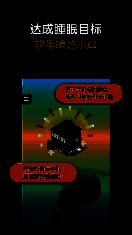 2、每天在就寝目标时间前开启 app,按下睡觉,开始建造房屋。