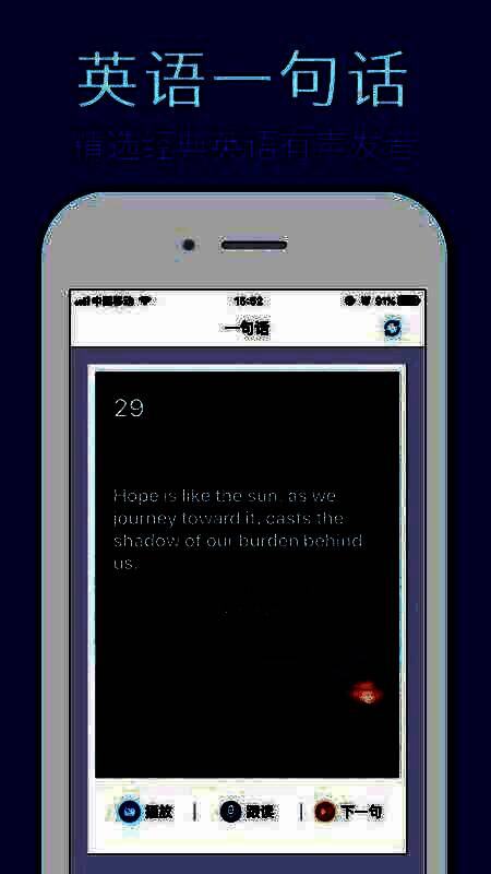 1、英语一句话,精选每天一句,真人发音,坚持每天学英语,每天进步一点点;