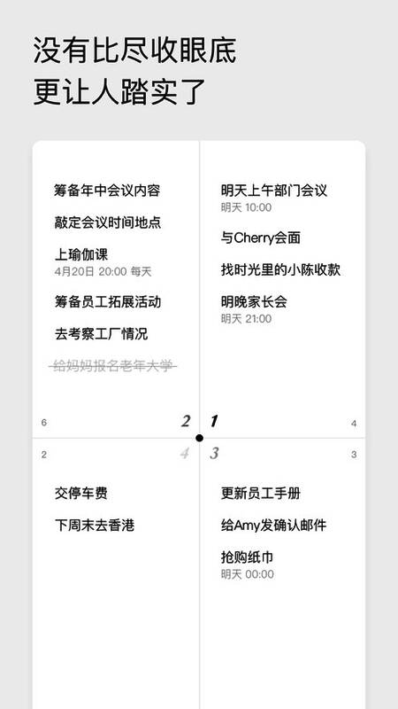 1、Priori融合高效的四象限工作法,工作与生活独立管理,井然有序,黑白主题自动切换;