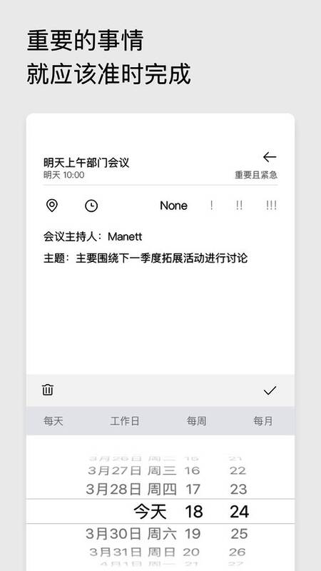 2、自动识别时间并设置提醒,多设备间无缝工作,还能适配iPad,横屏和分屏操作;