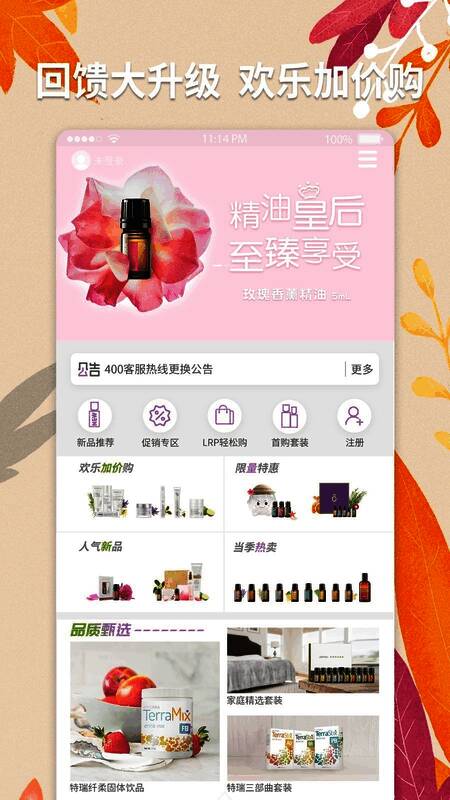 多特瑞是多特瑞(上海)商贸有限公司开发的一款精油服务软件,这里有丰富齐全的精油种类,为用户日常生活、旅行、饮食等方方面面带来不一样的体验,随时感受绿色、自然、舒适的高品质生活,喜欢的朋友欢迎下载体验吧。