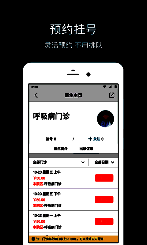 掌握出诊安排,如果自己有特定想挂号的医生则可以在此提前查看医生的出诊日程安排;