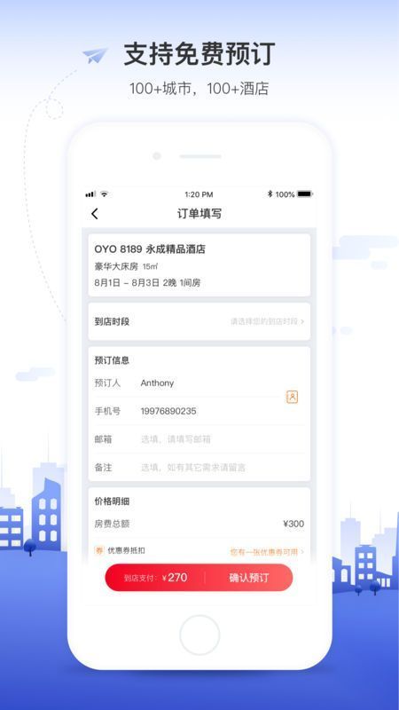 2、免费预订:只需搜索目的地,即可查看当地所有OYO酒店,无需预付费用,一键轻松订房。