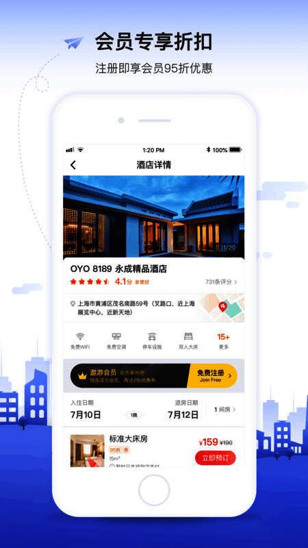 能让你低费入住高级酒店的服务app!《OYO酒店》不仅能为你提供最便捷的酒店预约预定服务,更可以让你在这款软件中享受到注册即成为会员,立享95折优惠!赶快下载软件开始使用吧!