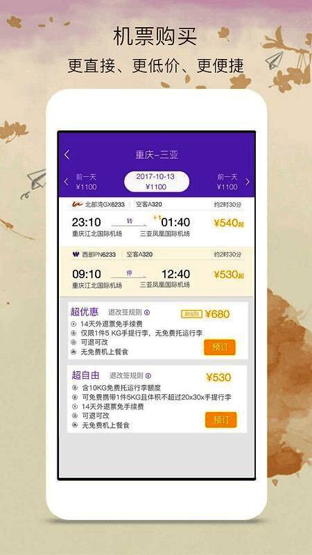 2、新增购买往返程机票功能,您可快速订购往返机票,省时省力省钱;