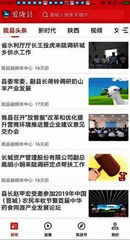 进入爱陇县应用,查看到新闻分类和类型;