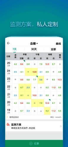 各种核心控糖功能便于糖友记录数据(血糖、血压、糖化血红蛋白等)、分析数据(图形、列表等形式展示,配合健康团队精细解读和指导),打造了更专注、智能、轻松、完善的控糖系统。