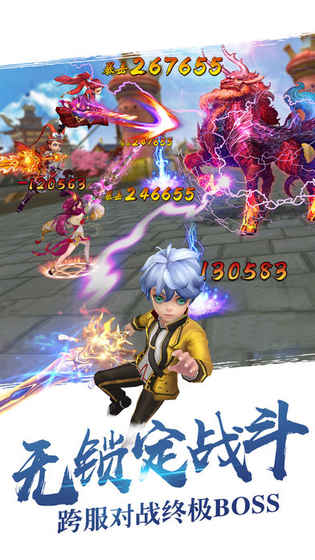 2、无锁定战斗,跨服对战终极BOSS;