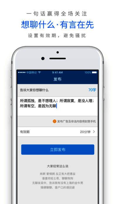 2、把想聊的话题告诉大家,同样有空并感兴趣的人就可以找到你。