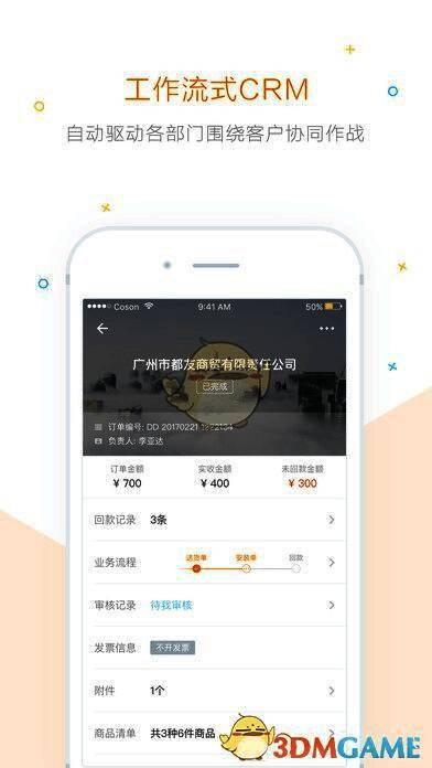 3、销售管理:客户管理、业务流程管理、订单管理、合同管理、销售跟进、产品管理、回款管理、发票管理、自定义模块;