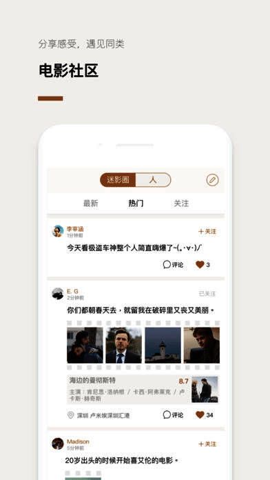 4、不只是电影:透过电影看世界,更加精彩,看时尚先锋、精致美食、天涯孤旅、情感两性,参与热门话题讨论,世界有你更精彩;