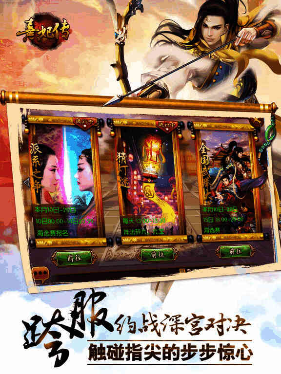 后宫争斗实力非凡,本服战场不能满足你?还可在跨服战场上可与势均力敌的对手一战高下。深宫之中,步步惊心,看谁可笑到最后?指尖定胜负!