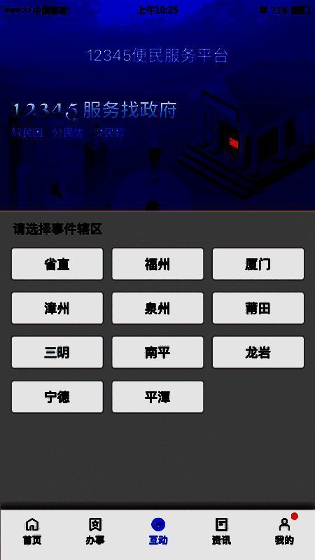 4、提供12345便民服务平台,选择辖区并方便地提交意见、咨询问题、反映诉求。