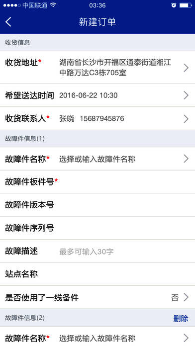 管理备件增加希望送达时间