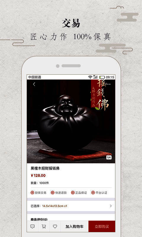 2、工艺品爱好者可在平台上浏览、购买、定制心仪的匠人作品,欣赏古典文化艺术的非凡魅力、交流匠人文化。还能与平台匠人进行直接的沟通交流,更好的了解与学习民间手工艺品文化体系;