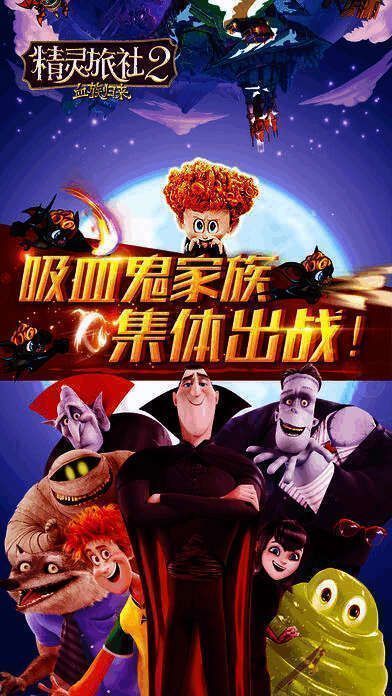 4、游戏剧情与电影同步,近百个关卡充满挑战,收集吸血鬼,弗兰肯,狼人等全部精灵鬼怪,养成最佳魔幻阵容;