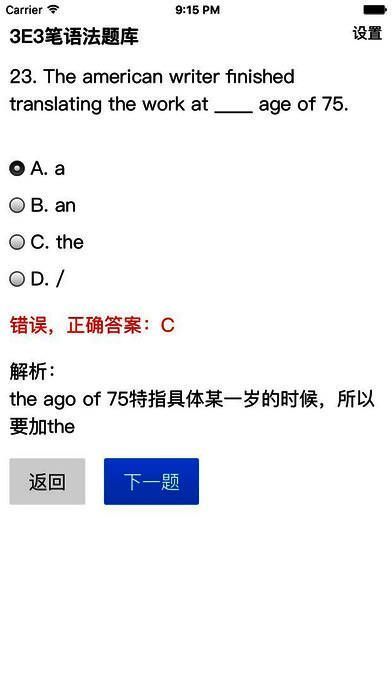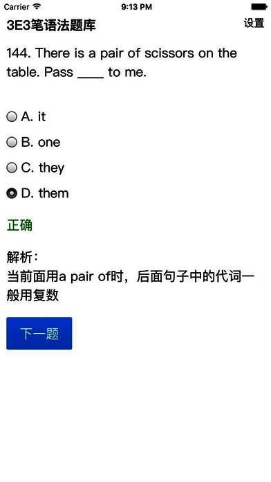 精选331道3E英语笔试三级语法全真试题及精选扩展习题,后续版本将持续扩充题库,每道题包含试题解析,可以设置倒计时,是您的孩子参加3E英语笔试三级考试的必备刷题工具。为培养小孩做题时随手圈关键词的习惯,在每道题未作答之前(倒计时中),可以用手指在题目文本的任意位置画圈、划线等。支持iOS内置词典,长按选词即可查词典。完全无广告!