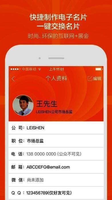 1、用户下载APP后可进行快速注册,获得个人二维码,可作为电子门票免费通过展会入场闸机,免去现场注册流程,可用于个人身份识 别,用上海国际商业年会APP扫描二维码,可以分发个人电子名片,环保,方便,经济,时尚;