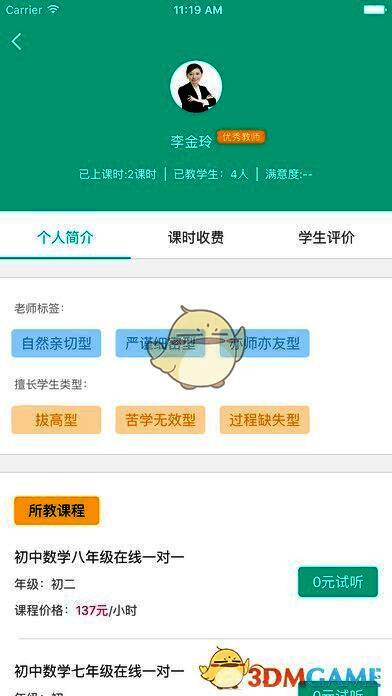 1、随时查询老师个人介绍,视频观看老师授课情况,课时收费清楚透明;