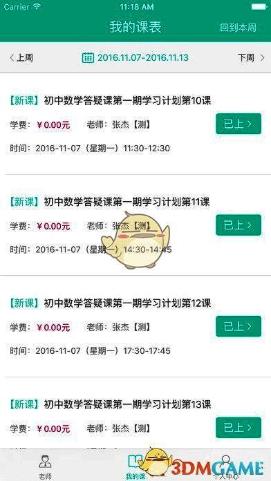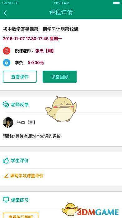 4、查看我的课表、课程详情,记录课堂练习情况和课后作业批改进度;