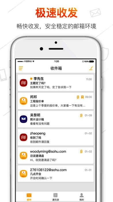 搜狐邮箱app来自搜狐旗下搜狐闪电邮邮箱专属手机客户端搜狐邮箱手机版,搜狐邮箱app手机上的搜狐邮箱客户端,搜狐邮箱app手机邮箱更方便,随时随地查收邮件、预览邮件回复重要的工作和私人邮件,搜狐邮箱app都可以办到。搜狐邮箱app工作生活更方便。