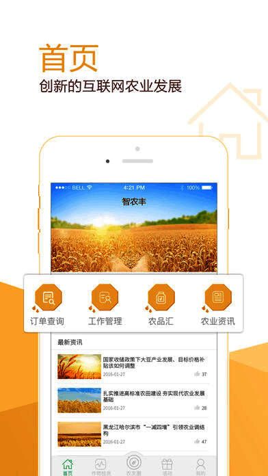 《智农丰》是一款农产品在线展示平台。本平台为农业用户提供了最新的农业政策和农业种植知识,将最新的国家政策和农业资讯带给广大的农业朋友,同时还能拓宽农产的销售渠道,帮助农民用户有效的把农产品转化为经济产品。